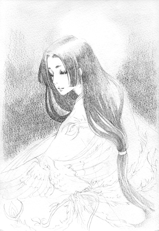 かぐや姫の絵でやってみたのは、鉛筆でがっつり描き込んでから絵の具に入る事。